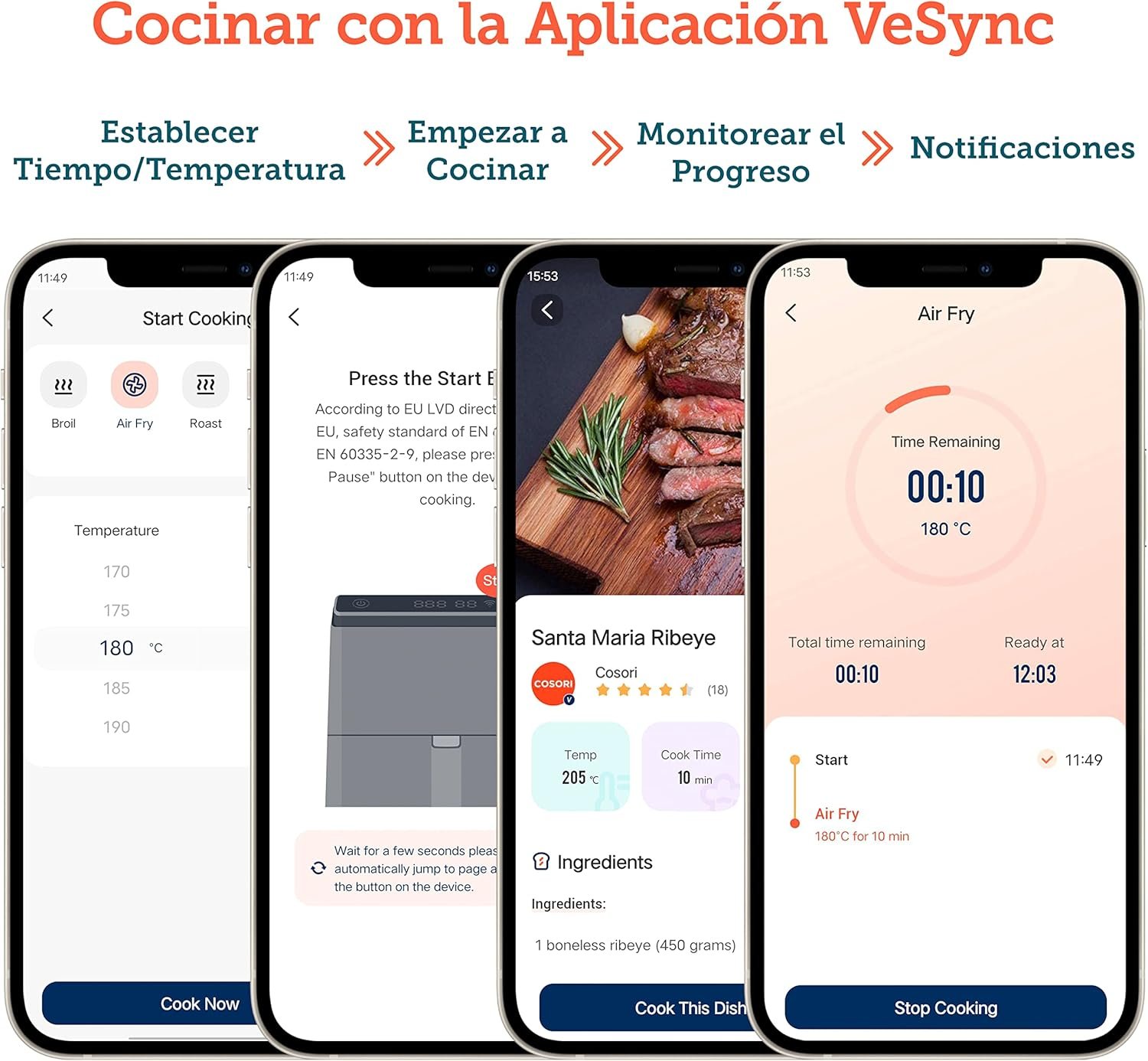 - Control remoto con VeSync APP – Conéctate a la app VeSync y controla la freidora desde tu móvil. Programa recetas, ajusta la temperatura y sigue el progreso de cocción fácilmente.